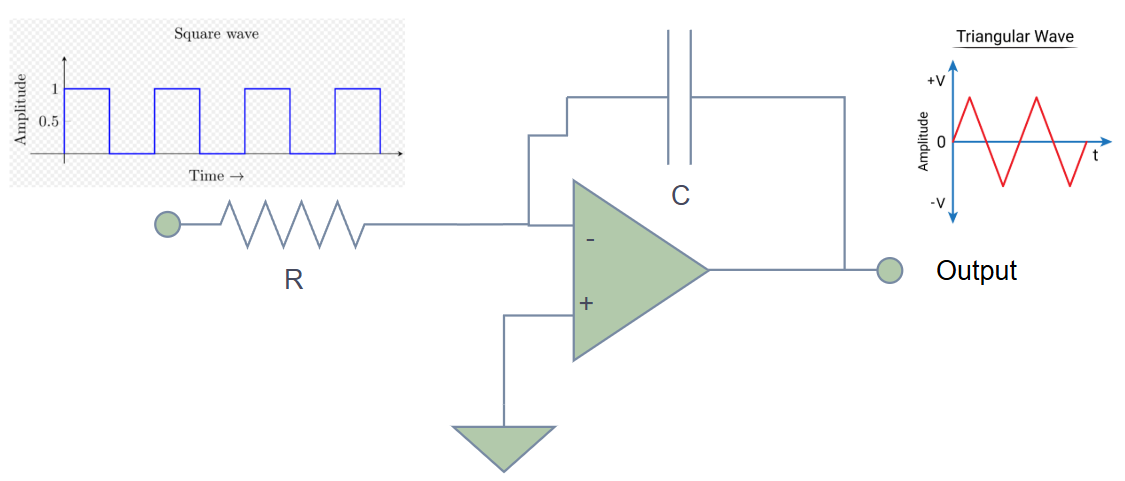 Vout(t)=โˆ’1RCโˆซ0tVin(ฯ„)โ€‰dฯ„V_{out}(t) = -\frac{1}{RC} \int_0^t V_{in}(\tau) \, d\tau