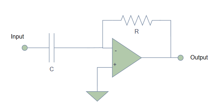 Vout(t)=โˆ’RCdVindtV_{out}(t) = -RC \frac{dV_{in}}{dt}
