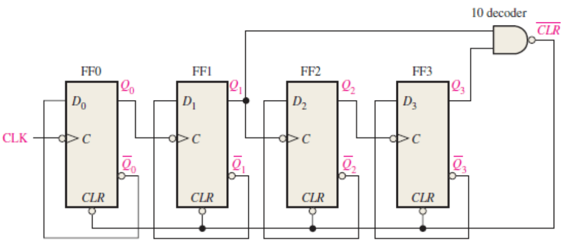 Example: MOD-10 counter needs ⌈log₂10⌉ = ⌈3.32⌉ = 4 flip-flops
