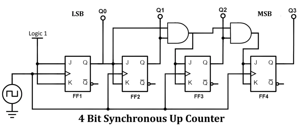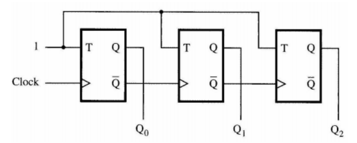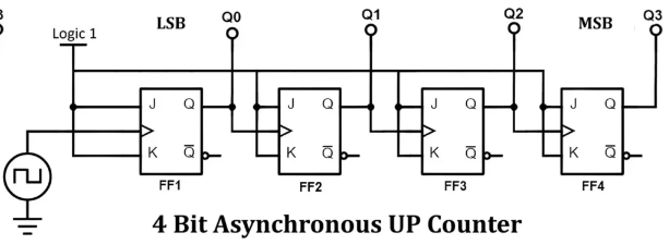 Called "ripple" counter because the clock "ripples" through the flip-flops like a wave—each FF clocks the next one. This creates propagation delay accumulation.